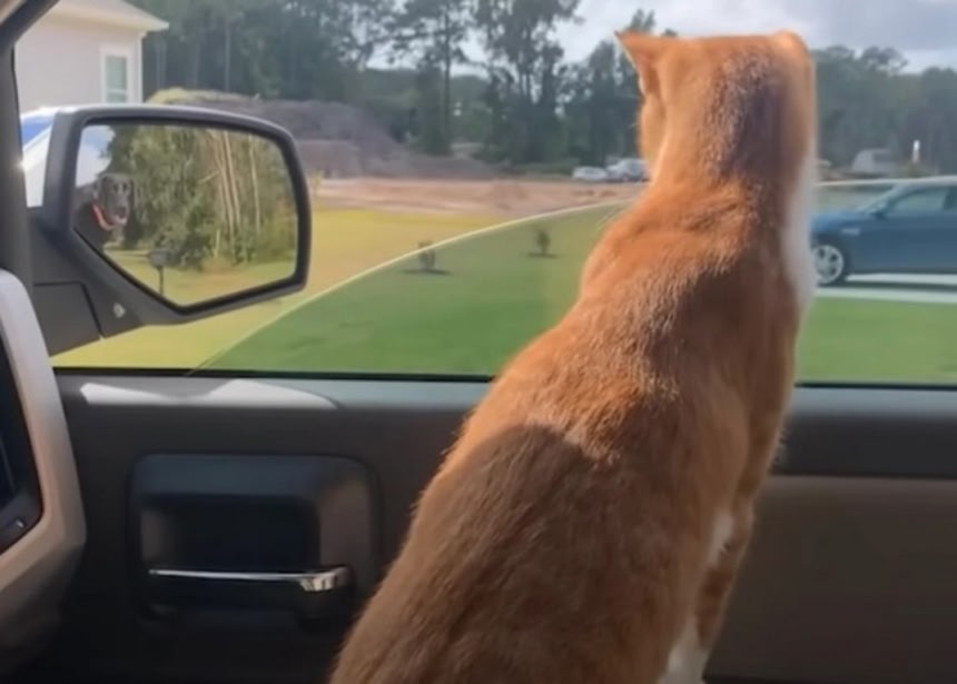 猫のマーリンは、子猫のときから犬たちに囲まれて育ってきたことから、自分を猫ではなく犬だと思っている。