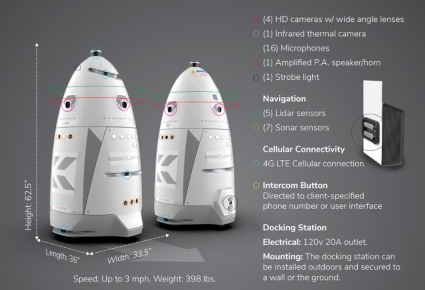 完全自律型の K5 は、複数のカメラや双方向通信など数々のハイテク機能を搭載。夜間を巡回して犯罪を事前に防ぐことが期待されていた。