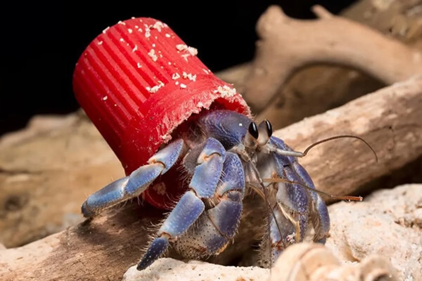 新たな研究によると、世界中の多くのヤドカリたちが、プラスチックごみや金属製のキャップ、ガラスのような人工物の家に住んでいるというのだ。