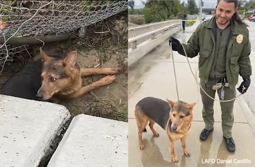 男性の犬は、洪水制御と排水を目的とした水路( Pacoima wash section)に流されてしまったのだ。