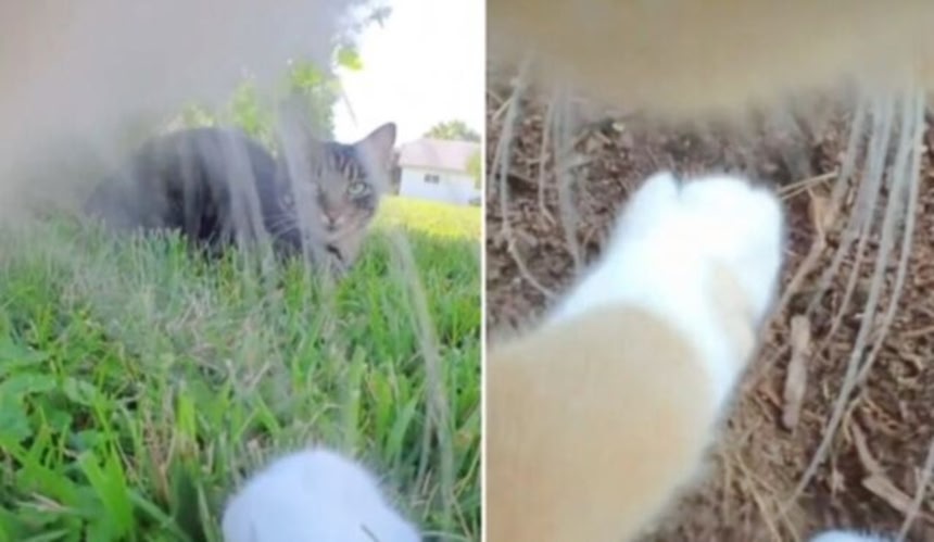 首にかけたカメラからの視点は、普段我々が見ている者とはだいぶ違う。猫目線で仲間たちとごあいさつ。