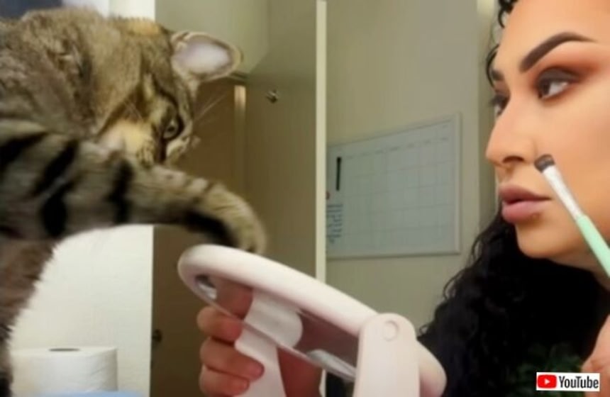 この画像を大きなサイズで見るメイクアップアーティストのダナさんは、愛猫のブービーズくんとの間に問題を抱えていた。彼女がお化粧を始めると、必ずブービーズくんが邪魔しに来るのだ。そしてダナさんをはたき、鏡をひっくり返し、何が気に入らないのかとにかく当たり散らすんだ。