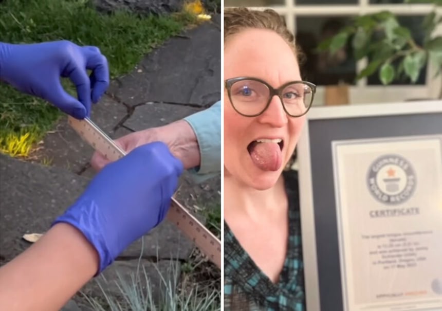 その後、ジェニーさんは 2023 年 5月17日に行った正式な計測で、みごと世界一舌が太い女性として認められた。
