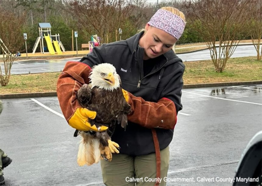 アメリカ、メリーランド州カルバート郡で3月9日未明、動物管理局が、国道4号線を走っていた車の運転手から、誤ってハクトウワシと衝突したという通報を受けた。