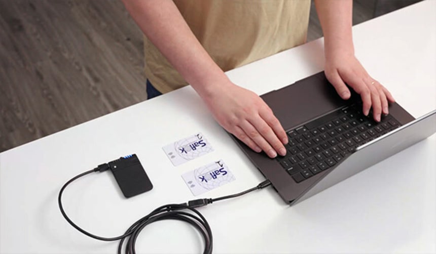 次に安価なカードリーダーで、カードキーからそのホテル固有のコードを読み取り、それをあらかじめ用意してあった別の2枚のカードキーに書き込む。