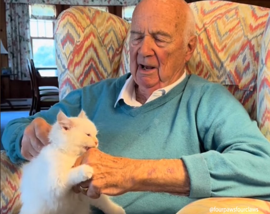 ラムは小さな子猫の時に迎え入れた猫なのだが、92歳の祖父の家を訪問する時に連れて行ったところ、その瞬間から両者に特別な絆が芽生えたという。