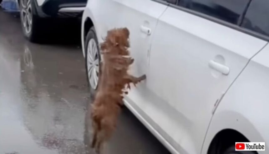 ある日のこと、投稿者さんたちは駐車場で、白い車を見つけてはドアに駆け寄り、何度も何度もジャンプしている犬を見かけた。