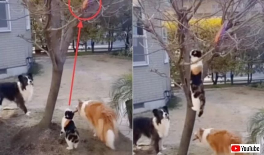 この画像を大きなサイズで見る犬たちが困っているのを知って、自分からさっと木に上っていった猫。彼らについての説明はなかったので詳しいことはわからないけど、彼らはもともと仲が良い同士だったのかな。