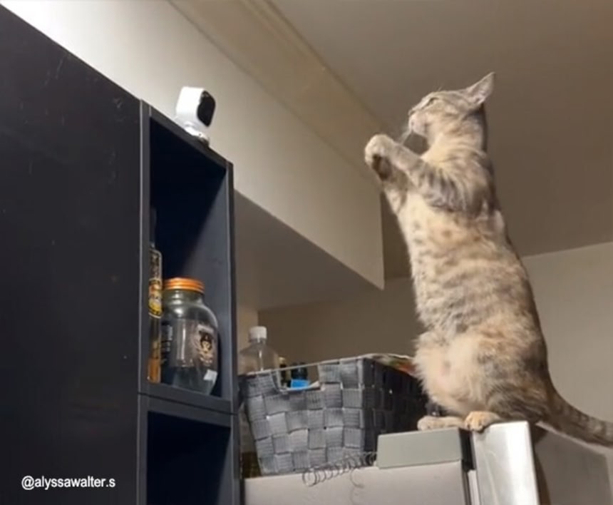 大学進学を機に家を離れることになったアリッサ・ウォルターさんは、愛猫の様子を見るために、離れた場所でスマホから監視カメラ(ペットカメラ)を見ていた。