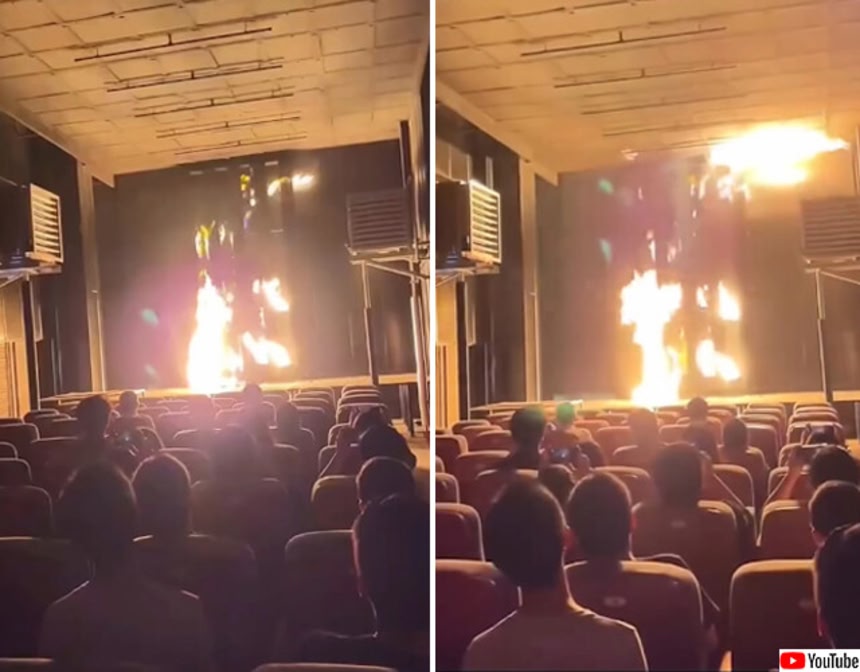 メディアによると場所は中国とのこと。この映画館は観客に最高の没入体験を提供するため、5D技術を駆使した火災効果を導入した。