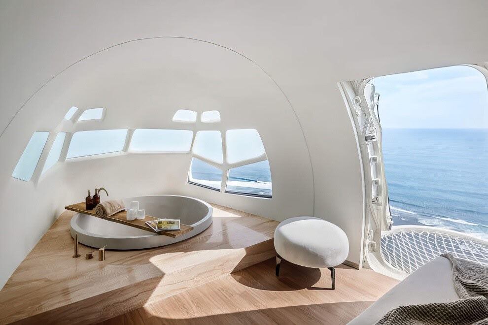 このホテルは、ただ珍しいだけでなく、かつてないほど洗練された設計と評判で、唯一無二の体験が味わえるという。ただ一部が崖から少々はみ出てるから高所恐怖症は要注意かも。