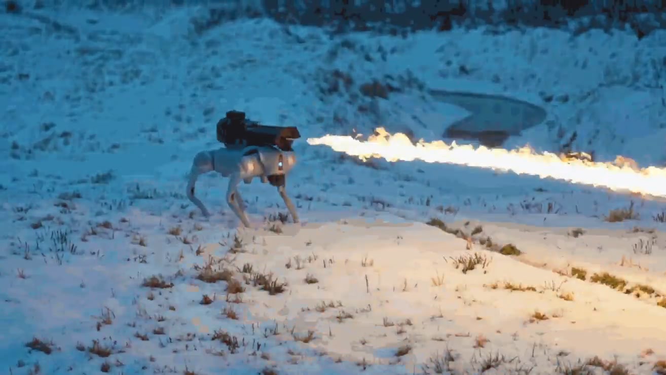 まあなんだ、犬型ロボット、スポットもいろんな用途に使われてるけど、火炎放射専用で売り出してるとこや動画でデストロイなイメージを押し出してるせいもあるのかな。