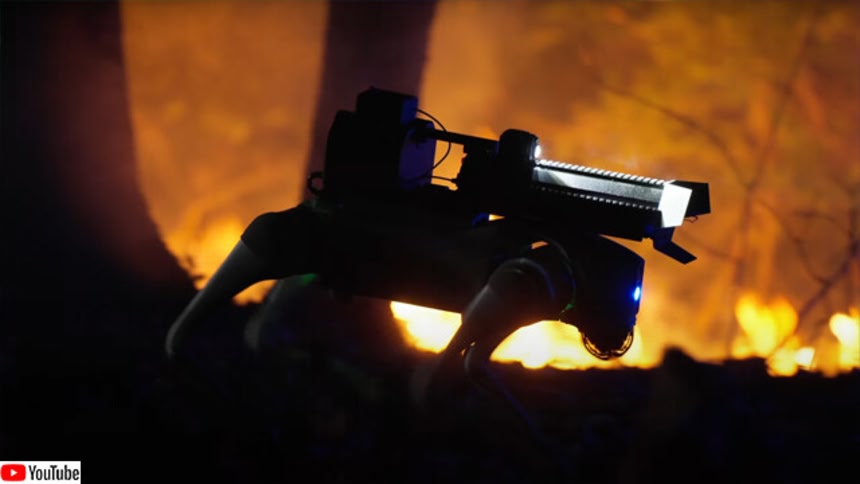 まえに話題になった電線の障害物を焼き払う火炎放射ドローンもけっこうなヤバみがあったが、こっちの犬型ロボットのほうがより不穏みが増す気がするのはなぜだろう?