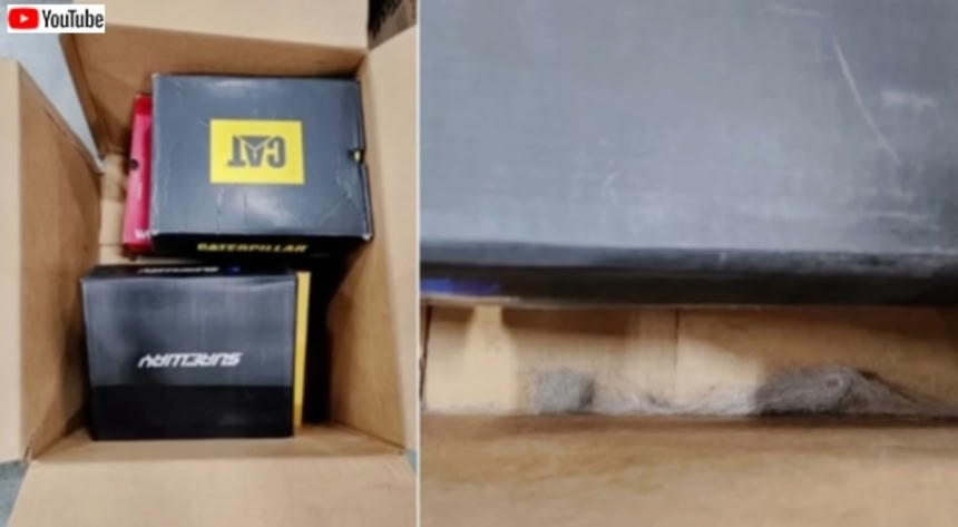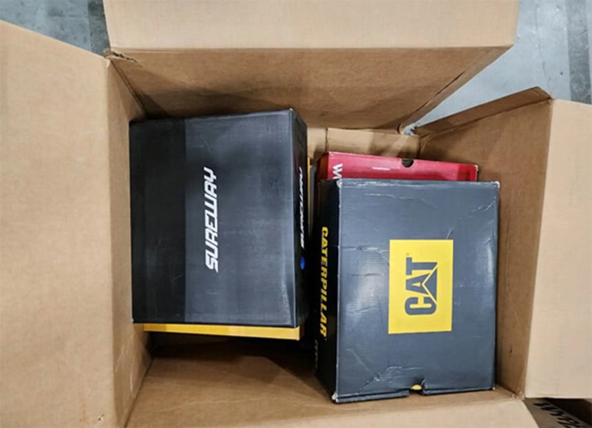安全ブーツの爪先にはスチールが入っており、箱はそれなりの重さになっていた。そのため、猫が入っていることに気づけなかったらしい。