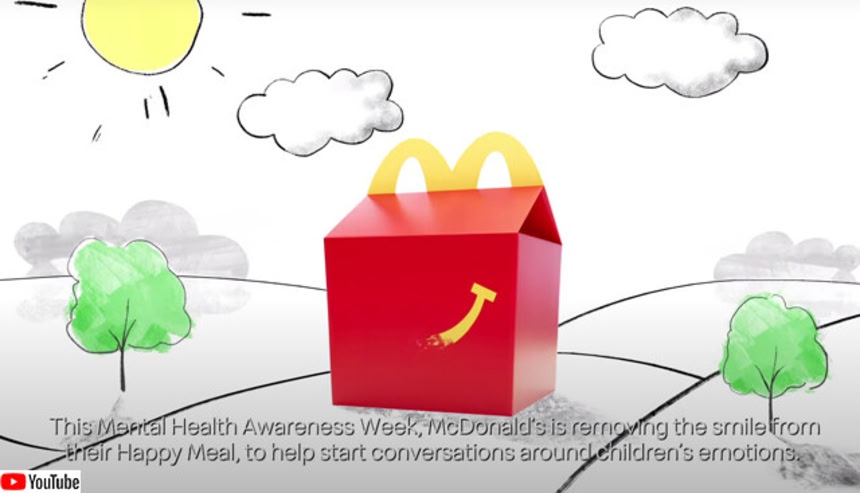 現在「メンタルヘルス啓発週間」中のイギリスでは、マクドナルドがハッピーセット(海外ではハッピーミールと言う)の箱にある笑顔を一時的にやめ、親子で感情やメンタルヘルスについて会話を促すキャンペーン「The Meal(ザ・ミール)」を展開中だ。