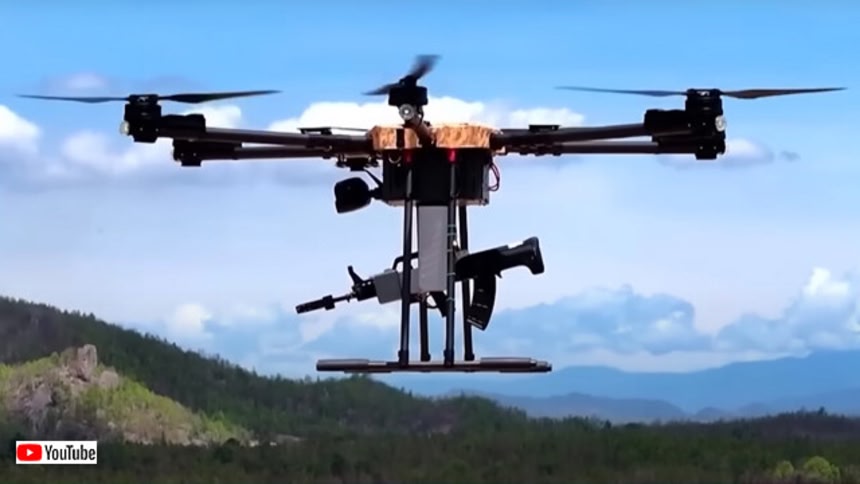 この画像を大きなサイズで見る2年間でここまで進んでいたとは… 2022年に「銃を背負った中国のロボット犬がドローンから降り立つ映像」を紹介したが、あのディストピアな世界が現実味を帯びてしまった。先日、中国の軍事部門がついに銃を装備したロボット犬の実際の映像を公開したのだ。