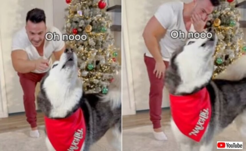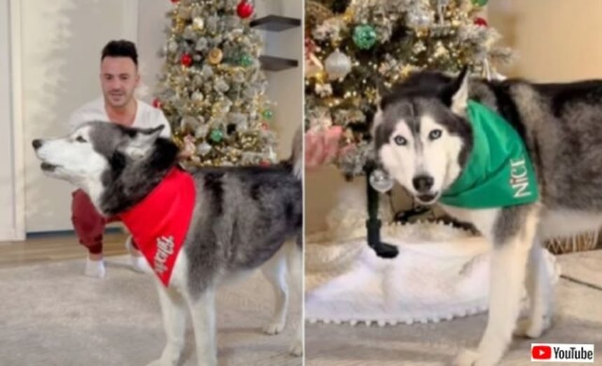 でも実はサンタさんは良い子と悪い子のリストを持っていて、悪い子のところには来ないんだって。さて、プレゼントをもらえなかったシベリアンハスキーのミーカさん、絶対に納得がいかないみたいだよ。