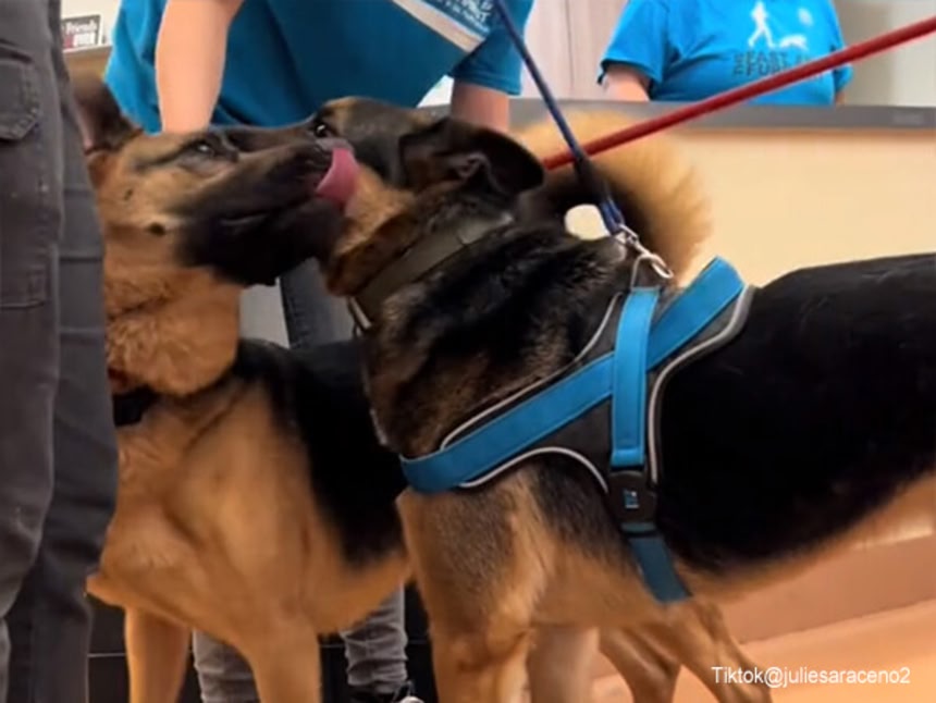 この画像を大きなサイズで見るアメリカの保護施設に長い間いた2匹のジャーマンシェパードに幸運が訪れた。1匹はブルーノで280日間、もう1匹はオリーで537日間ずっと施設暮らしをしていた。