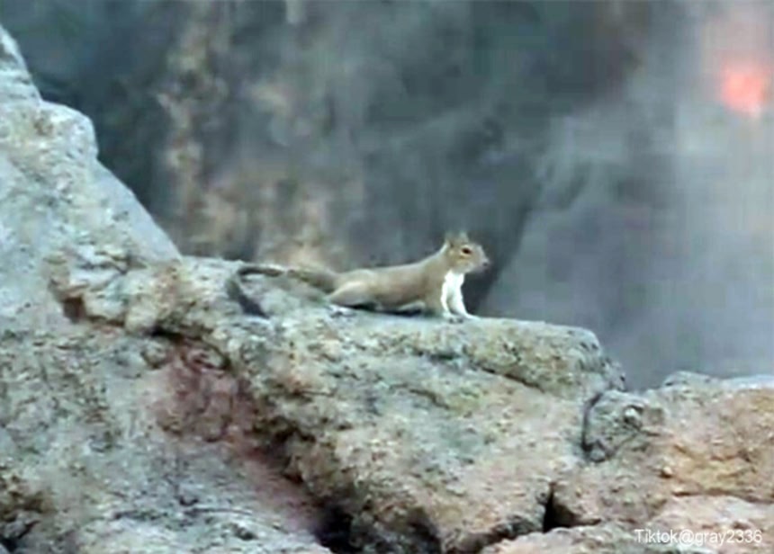 ちょうど火山噴火のタイミングで、火口付近にいたのは1匹のリスだ。