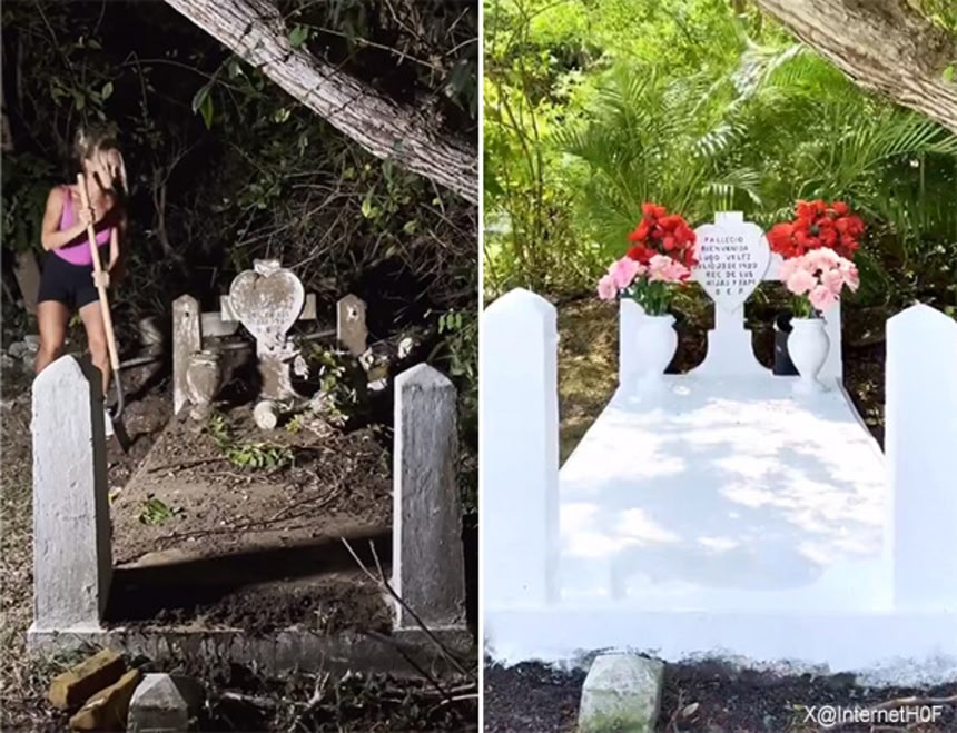 彼女が夜に放棄された墓を清掃している様子が、X(旧Twitter)に再投稿されで話題を呼んでいた。