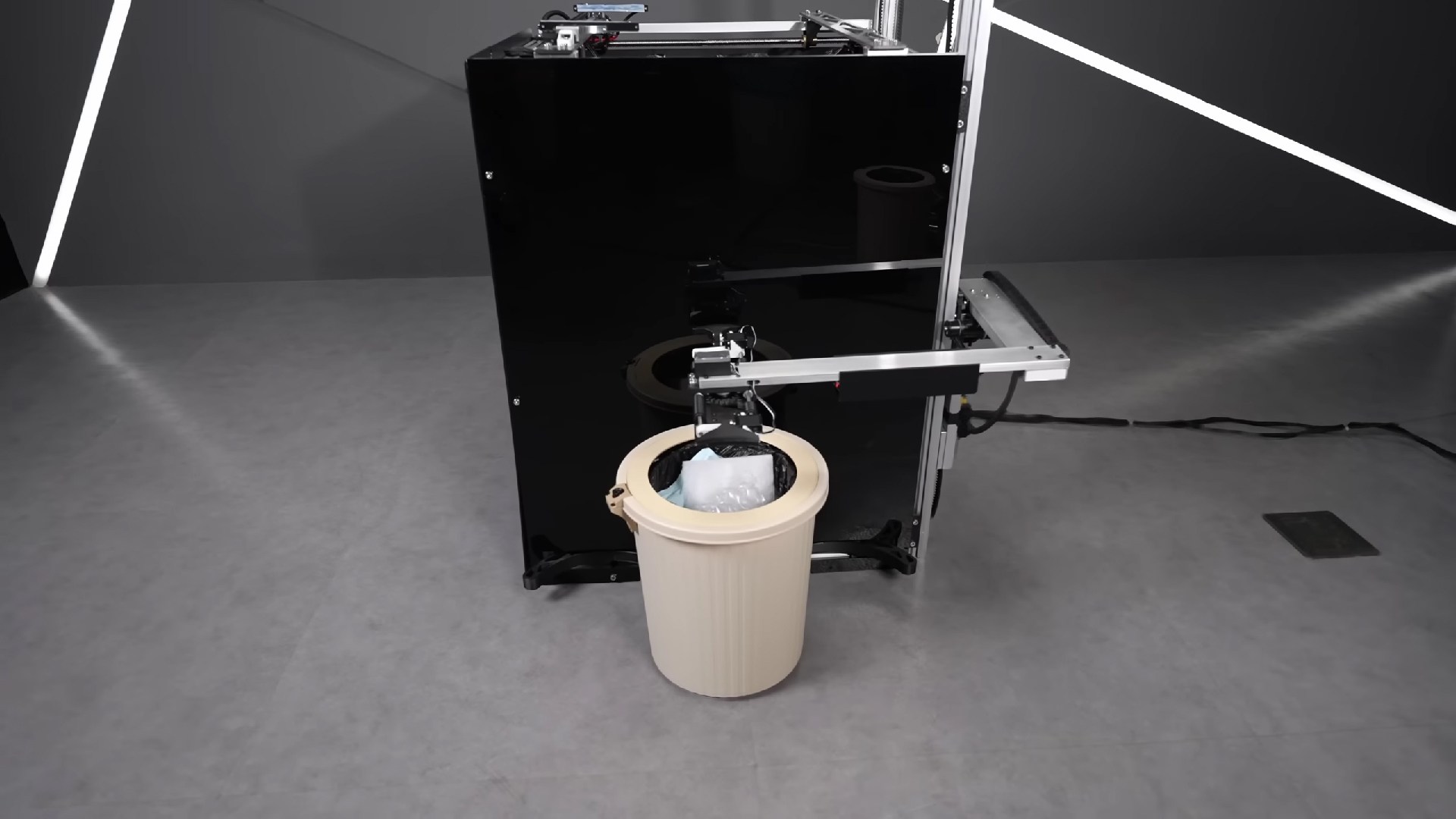 このゴミ箱は、自動で集まってくるゴミ箱たちのゴミ袋を器用に取り出せるだけでなく、その袋の口をワイヤーの熱で密封してカットしながら回収。