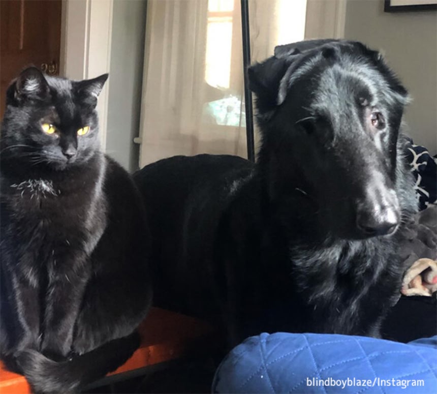 盲目の犬と片目の猫。視力は失われていてもお互いの存在を全身で感じ取り、寄り添い続けてきた。