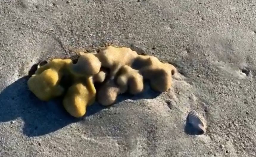 この画像を大きなサイズで見る2025年5月のある日、アメリカ、ノースカロライナ州の海岸で波打ち際を歩いていた女性が、不思議なカタマリを発見した。