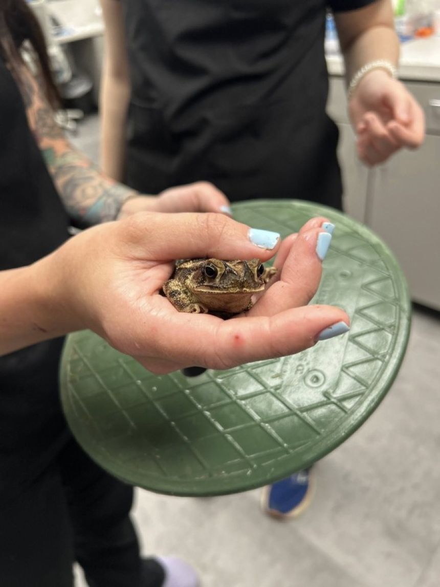 コロニー動物保護局の局長マーク・クーパー氏によると、その日の朝、犬をトイレのため外に連れ出した職員が、裏門を開けた途端にカエルを見つけのだという。