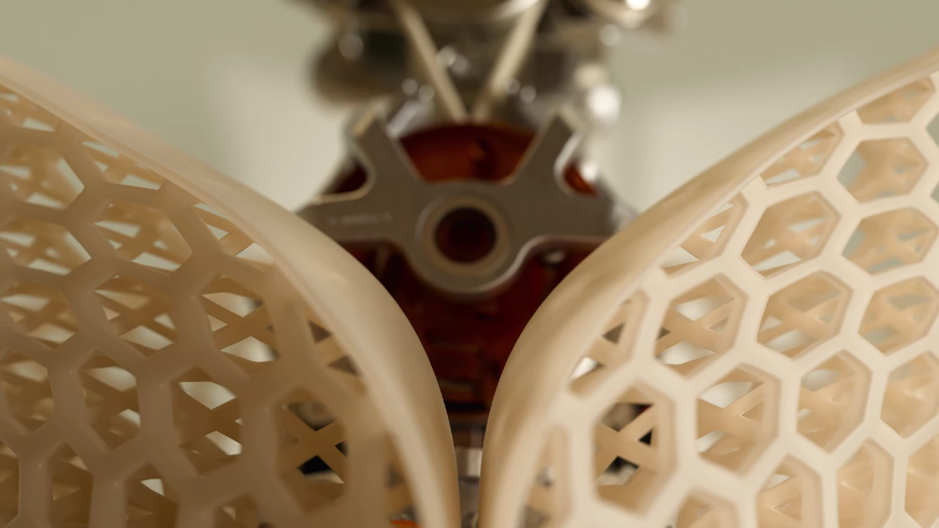 この画像を大きなサイズで見る機械部はまず、3Dプリントによる格子状ポリマーで覆われ