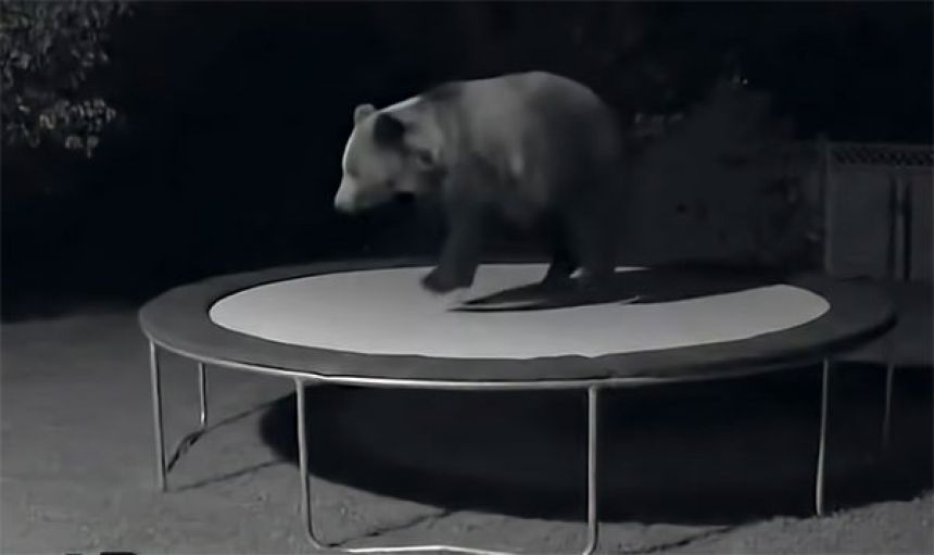 動画には、動物がトランポリンの上で楽しそうに遊ぶ、人間のような仕草を見せるシーンもある。