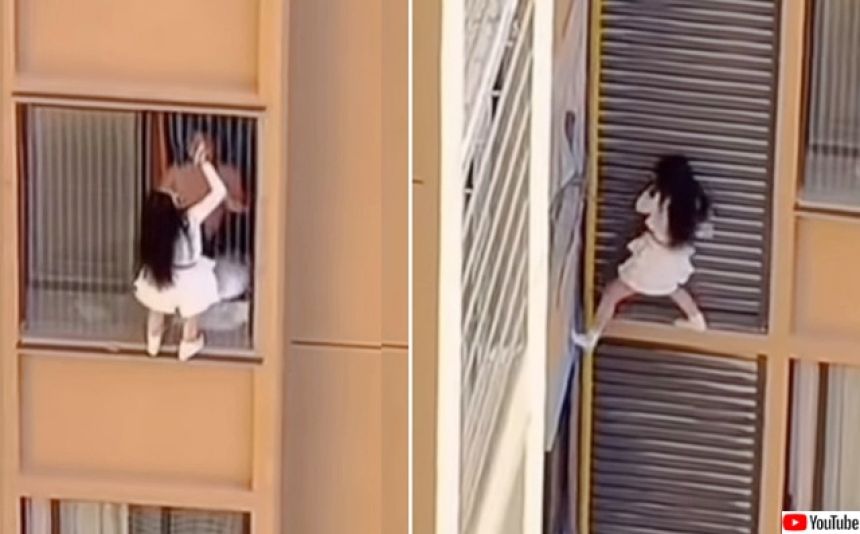 事件は2025年11月30日、中国・広東省にある集合住宅の10階で発生した。映像を見ると、白いミニスカート姿の髪の長い女性が、高層階の窓の外にしがみついている。