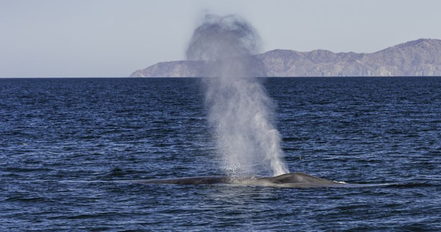 潮吹きとは、クジラが勢いよく排気した呼気が周囲の水滴と共に噴き上がる現象だ。