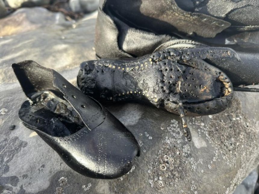 ビーチ・アカデミーのエマ・ランポートさんは、この靴は150年ほど前に、オグモアの沖合にあるタスカー・ロックに衝突して難破した、イタリアの貨物船「フロリック号」のものではないかと推測している。