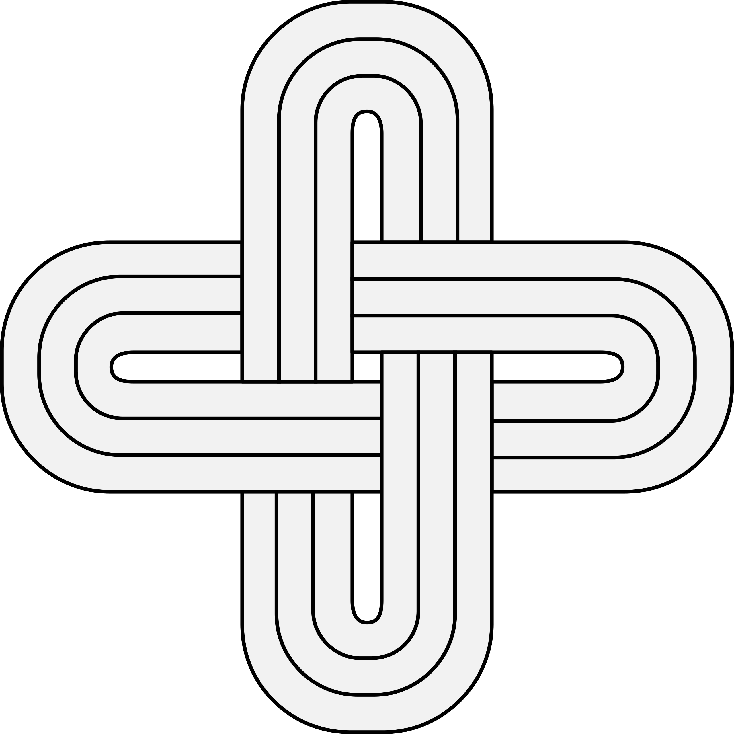 ソロモンの結び目の模様は、2枚の楕円形のループが垂直に交わり、互いに上下を通って複雑に絡み合っているのが特徴である。