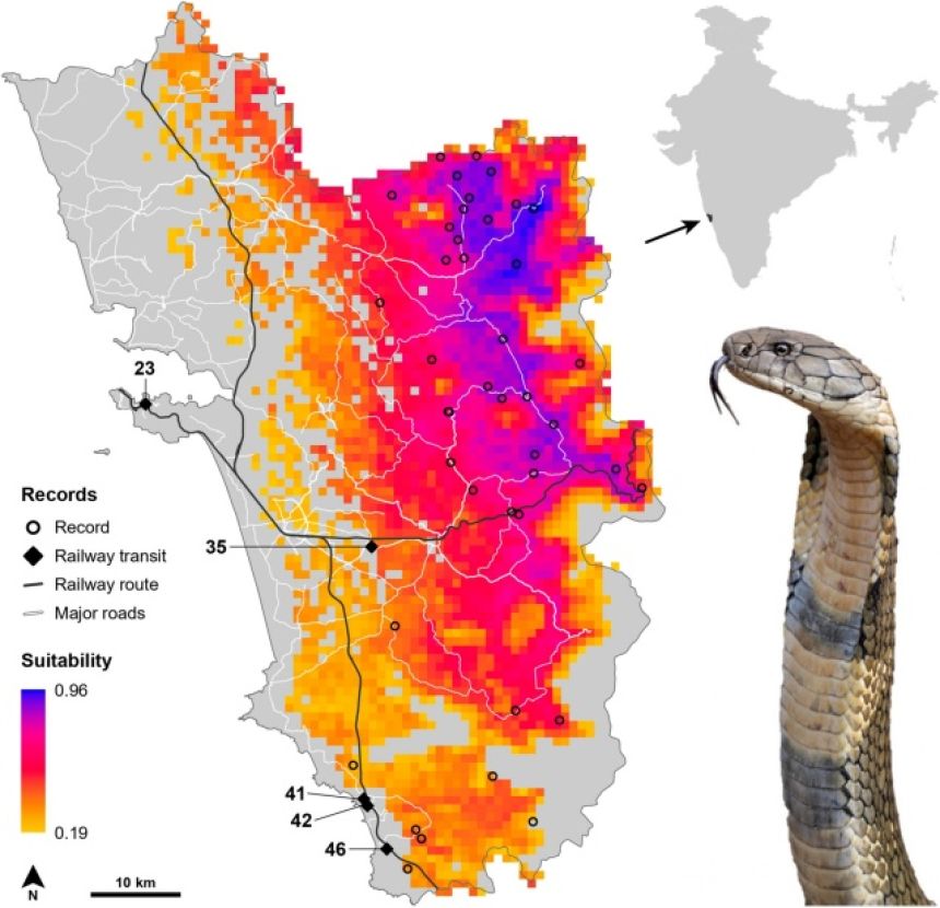 パルマール氏は人間の活動、植生、気候といった要素を組み込んだ種分布モデルを作成した上で、理論上適していると考えられる生息地と、実際にコブラが救助された地点とを比較した。