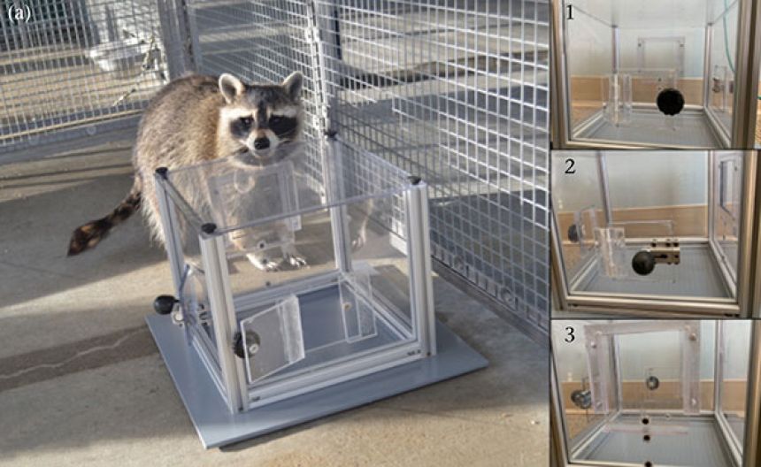 この画像を大きなサイズで見るアライグマはエサのごほうびがなくても、純粋に面白いという好奇心だけでパズルを解き続けることが判明した。