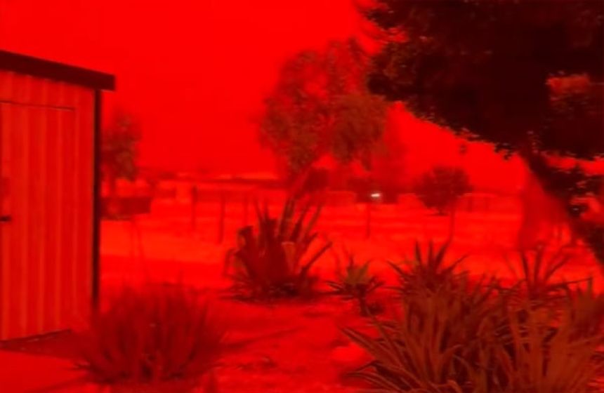 この画像を大きなサイズで見る西オーストラリア州で2026年3月27日、空が2時間にわたり不気味な赤色に染まった。