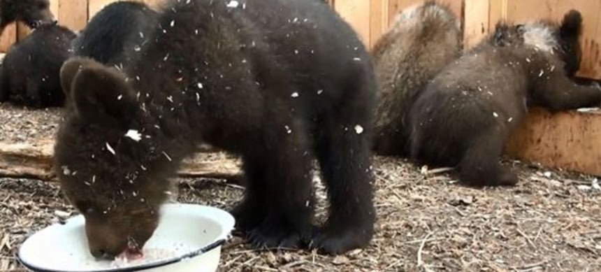 続きを読むロシアにあるクマの保護施設。飼育員さんが食事用の長いテーブルを運び、ボウルにエサを入れ、さあごはんの準備が整った…