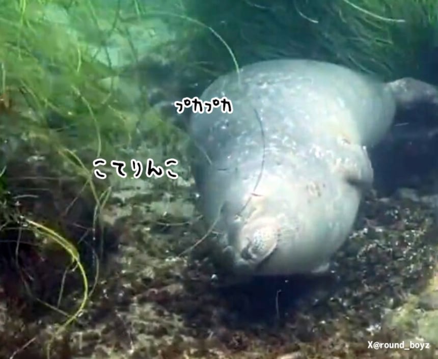 続きを読む水の流れに身を任せたまま、藻の生えた岩山にぶつかっても全く動かないアザラシ。大丈夫?生きてる…