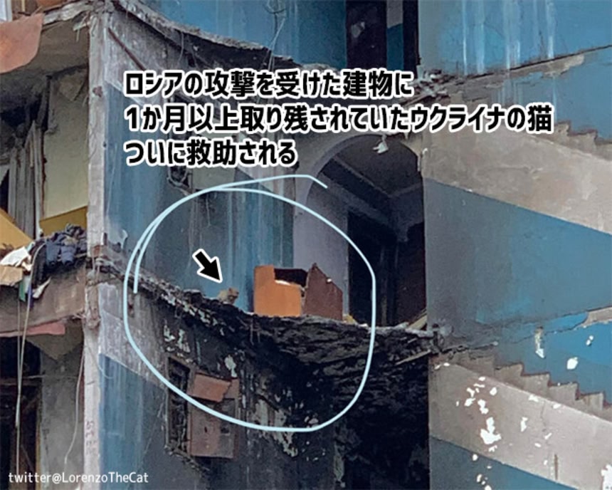 続きを読むロシア軍の攻撃で破壊されたウクライナの建物の中に猫が1か月以上取り残されていた。動物保護団体と消防隊の協力により無事救助に成功。飼い主の行方はわからないままだという
