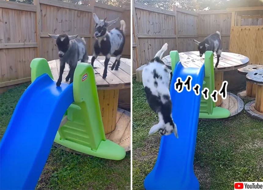 続きを読む自宅で飼っている子ヤギに子供用のすべり台を購入した女性。子ヤギたちはたいそう喜んで遊んでいるそうだがその遊び方がぶっ飛んでいる。滑らずに台に登ってジャーンプ!をくりかえすのだ