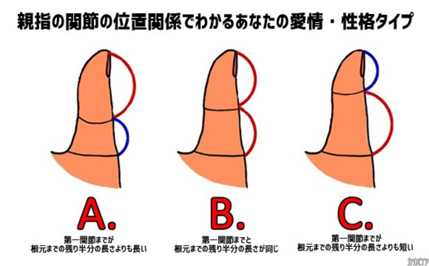 続きを読む親指の関節の位置関係でその人の愛情や性格がある程度分かるという…