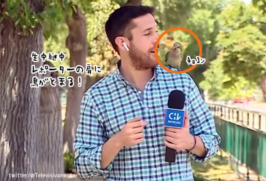 続きを読む果たしてこれはかわいい放送事故と言えるのだろうか?現場から中継していたレポーターの肩に鳥がチョコンととまった。うん…