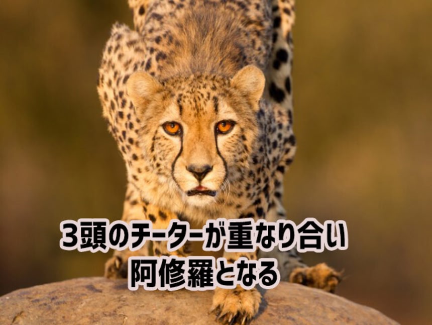 続きを読むケニアで撮影した奇跡の一枚は3頭のチーターが重なり合い阿修羅のような姿になったもの。胴体が1つ、頭が3つある聖獣のようにも見え、その神々しさがネットで話題となった
