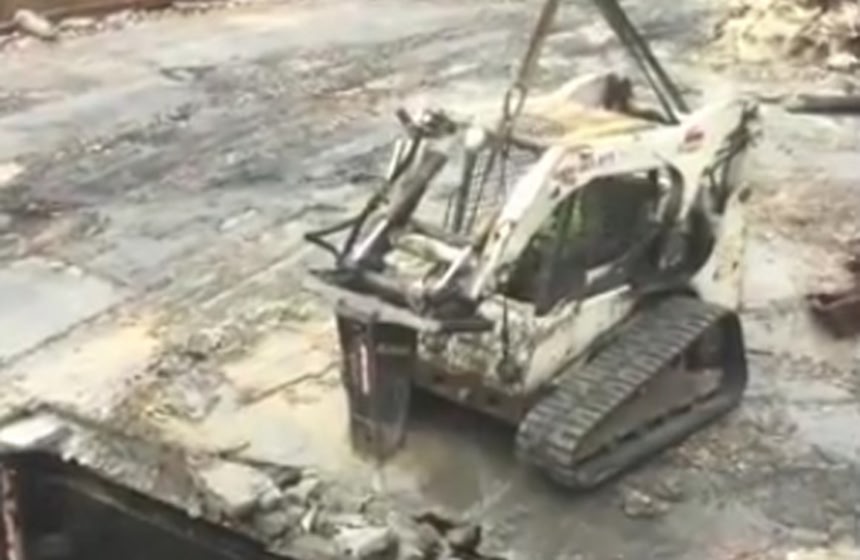 続きを読む取り壊しが決まった建物の屋上で重機がもくもくとお仕事中。屋根を粉砕していくのが役目なのだが…