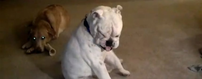 続きを読むトランポリンの上でジャンプしながら、ぐるりんちょと回転技をこなすブルドッグ犬。空中回転とまではいかないまでも…
