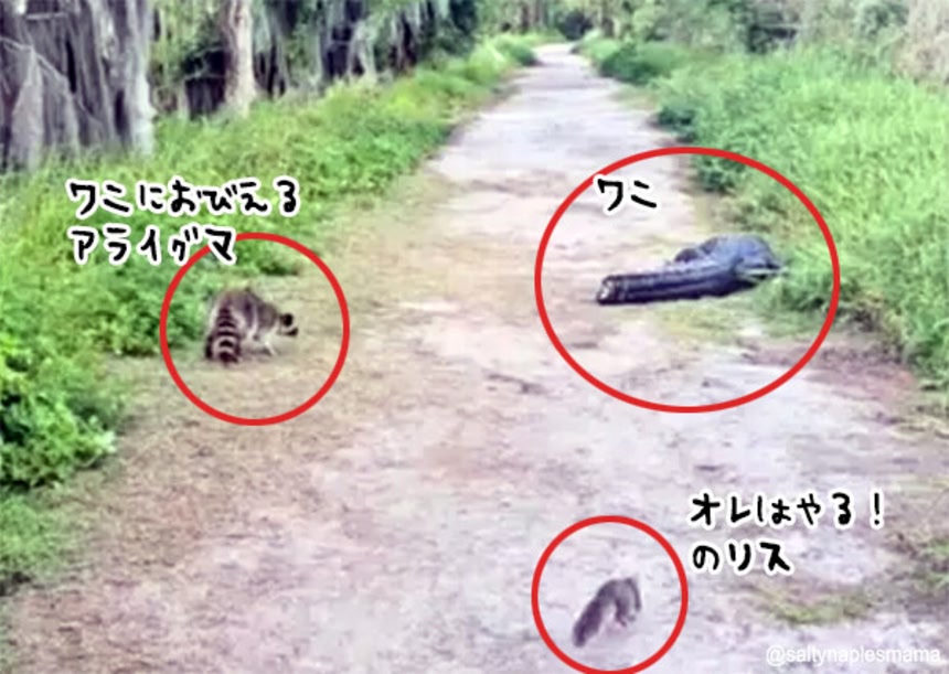 続きを読むフロリダで、沼地に近い道にワニが横たわっていた。この道を進みたかったアライグマはひるんでしまい…