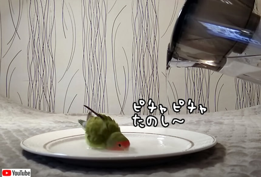 続きを読む水遊びが大好きなインコの為、飼い主は最高のプールを作ってあげた。用意するのは水差しと平たい皿。そこにゆっくり水をそそぐと、インコは皿の中に入り込み、パシャパシャと水遊びを楽しむのだ