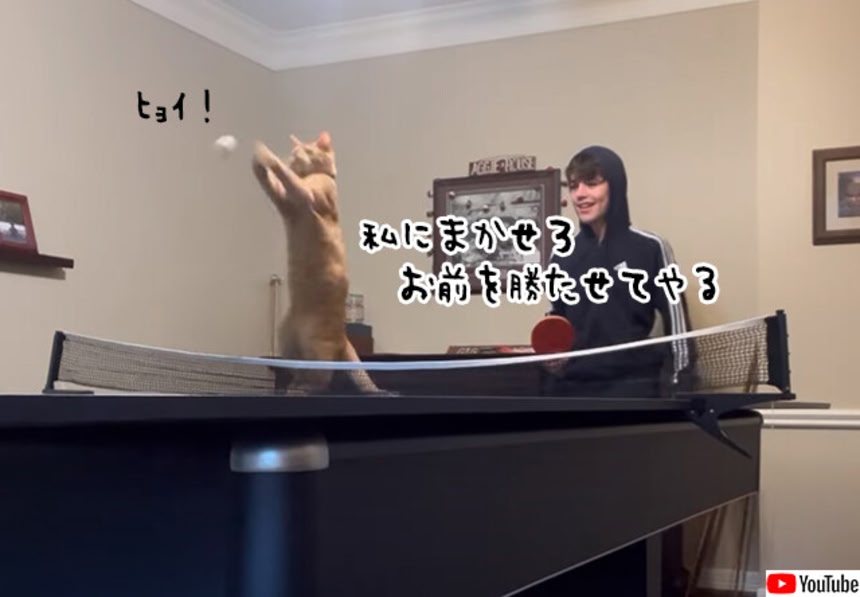 猫は卓球の達人だった!肉球ラケットで打ち返し勝利を導く