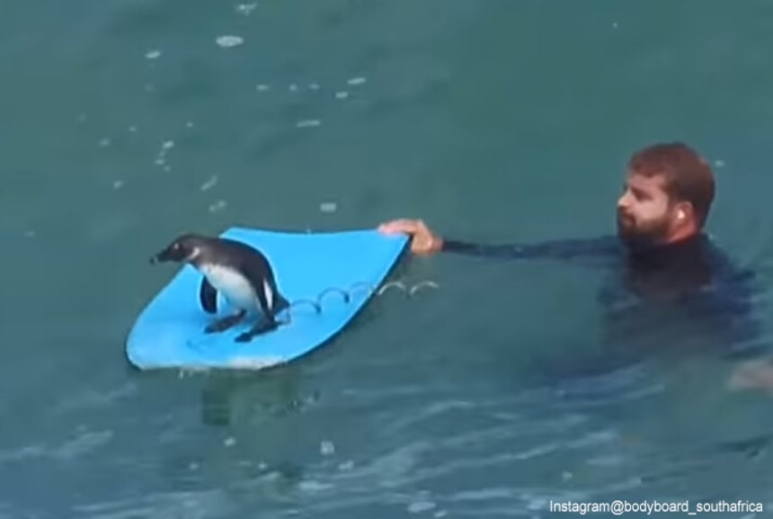 続きを読む南アフリカの海で、人間の持っていたボディボードに乗ってきたのはなんとペンギン!人間たちが波乗りを楽しんでいるのを見て…